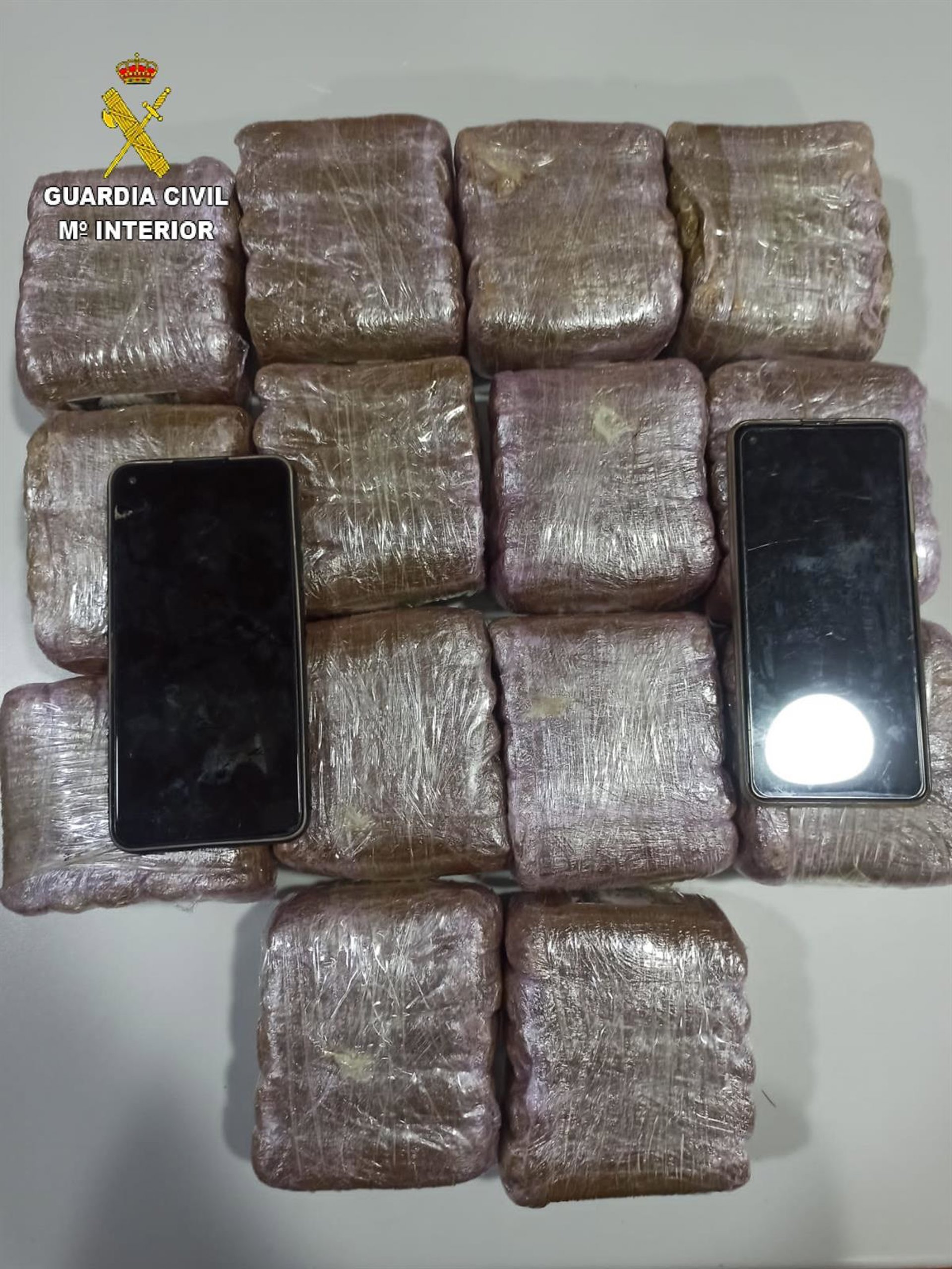 La actuación se ha saldado con la aprehensión de un total de 14 paquetes envueltos en cinta de embalar en cuyo interior ocultaban un total de 7,536 kilogramos de "resina de hachís" dispuestas en dosis para su posible venta y distribución.