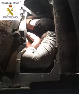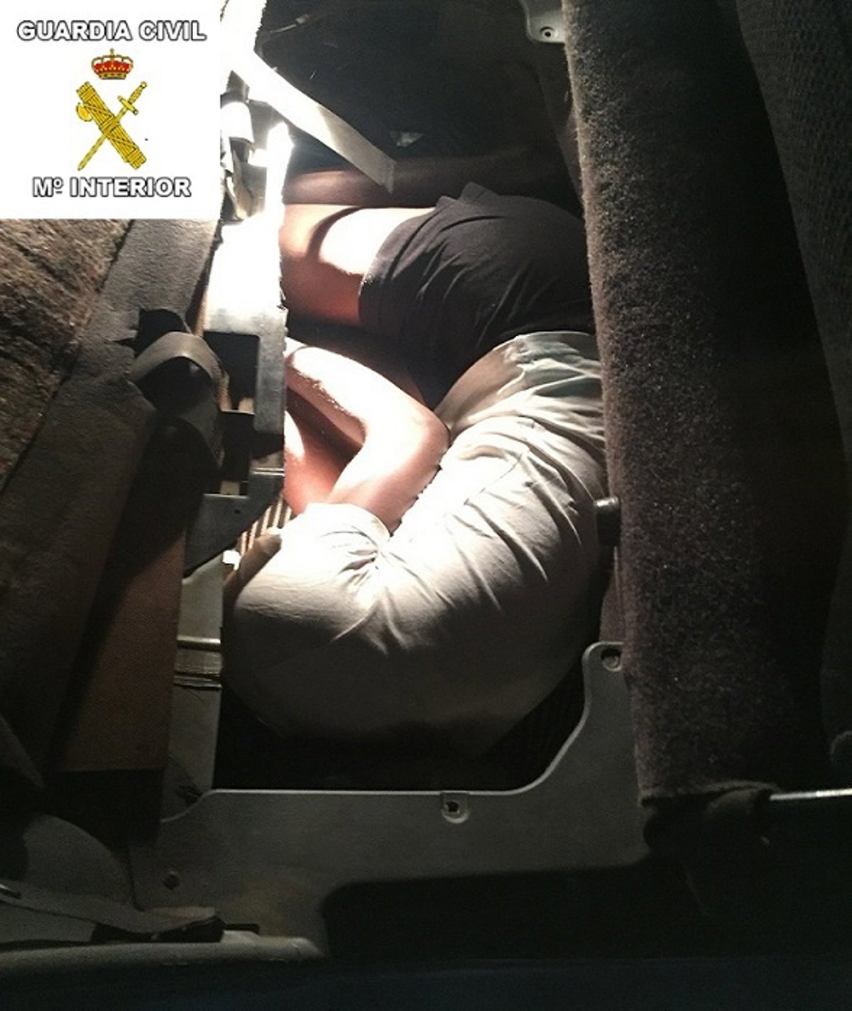 Apeados los ocupantes e iniciado el reconocimiento, los agentes han localizado el doble fondo, "bajo el asiento trasero" --precisamente donde iban sentados los menores junto a un adulto-- y, en su interior, a un joven en posición fetal, que fue "auxiliado y rescatado de tan infrahumano habitáculo".