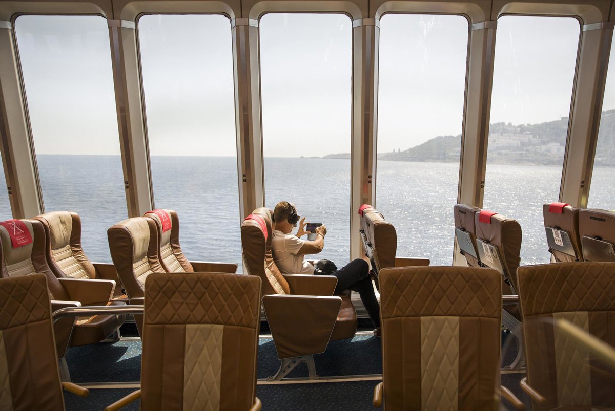 Un pasajero, en una imagen de archivo, a bordo de una de las navieras FRS, tras la reanudación de la ruta Algeciras-Ceuta en junio de 2020 - María José López - Europa Press - Archivo