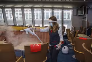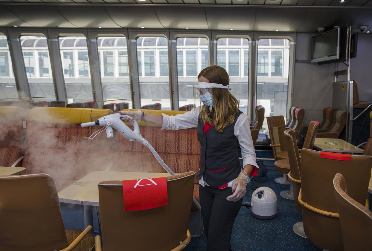 Archivo - Imagen de archivo de una trabajadora que realiza labores de higiene en el interior de una de las navieras FRS, tras la reanudación de la ruta Algeciras-Ceuta en junio de 2020 - María José López - Europa Press - Archivo