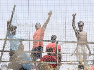 Archivo - Varios migrantes detrás de una valla en la Ciudad del Fútbol del Altos del Real a 18 de mayo de 2021, en Melilla (España). - Ángela Ríos - Europa Press - Archivo