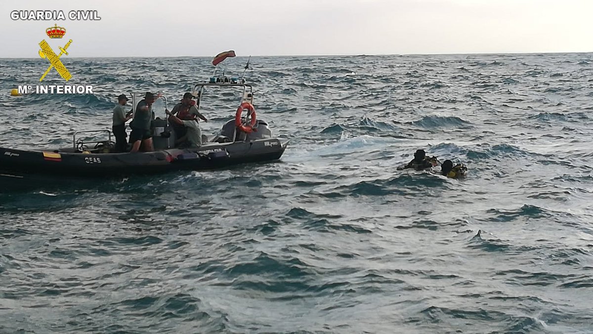 Una vez en marcha el protocolo de persona en riesgo en el mar, activaron con inmediatez todos los medios disponibles, por tierra, mar y aire, personándose dos embarcaciones del Grupo Especial de Actividades Subacuáticas (GEAS), patrullas terrestres y un helicóptero.