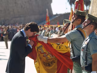 Los dos hijos varones del actual duque de Alba, Fernando y Carlos Fitz-James-Stuart y Solís, han manifestado este domingo su compromiso con la defensa de España jurando bandera ante la enseña del Tercio de La Legión de la ciudad autónoma que lleva el nombre del título que ostenta su padre, Carlos Fitz-James Stuart y Martínez de Irujo, que también ha acudido al acto organizado por la Comandancia General local.