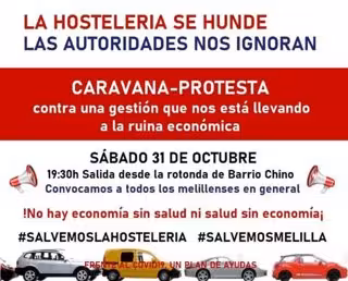 Cartel de la caravana-protesta de la hostelería de Melilla tras la prórroga del cierre total del sector - HOSTELEROS DE MELILLA