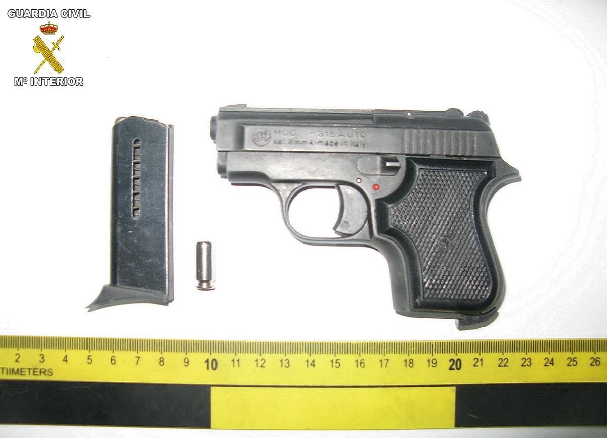 El portavoz de la Comandancia de la Guardia Civil ha señalado que se trata de una pistola detonadora marca BBM, modelo 315 AUTO, provista de cargador, que contenía un cartucho de fogueo sin detonar.