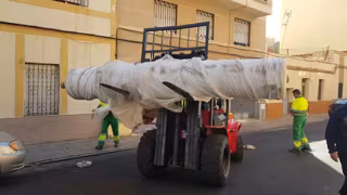 La Policía Local, ante ello, ha procedido a la intervención de dicho material, para lo que han sido necesarios los servicios operativos de la concesionaria de la limpieza pública de Melilla, así como los de una carretilla elevadora y camión, acción por la que se intervinieron un total de 84 rollos de textil de diversos tamaños, así como 41 cajas de pantalones vaqueros.