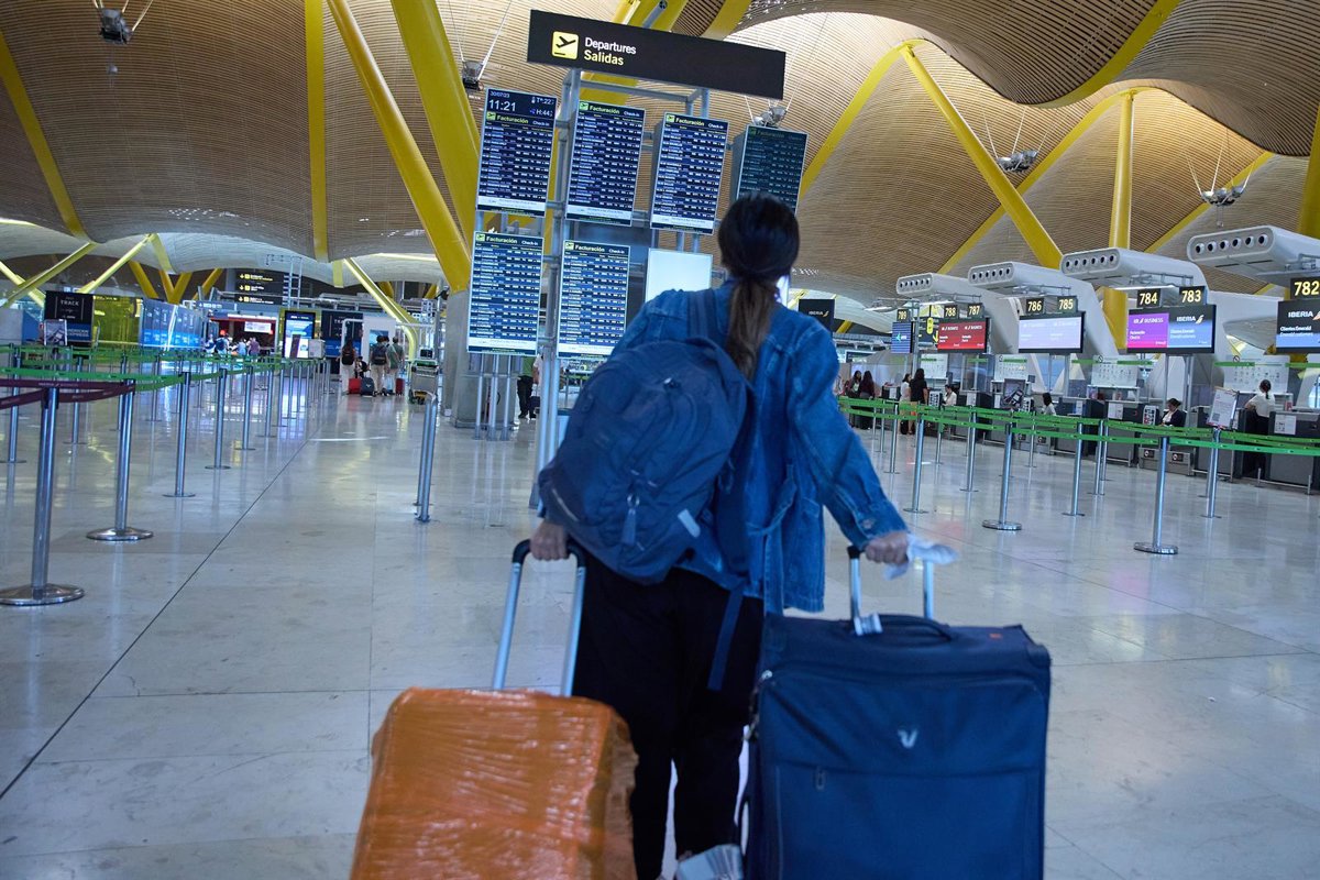 Una pasajera consulta un panel de salidas de vuelos - Jesús Hellín - Europa Press