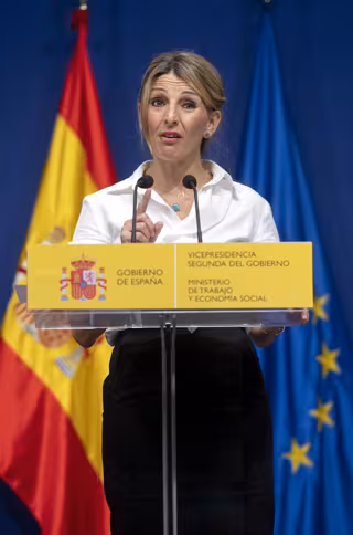 Archivo - La vicepresidenta segunda y ministra de Trabajo y Economía Social, Yolanda Díaz, comparece tras una reunión con los responsables de las asociaciones de autónomos UPTA, ATA y Uatae, en la sede del Ministerio, a 6 de mayo de 2022, en Madrid (Esp - Alberto Ortega - Europa Press - Archivo