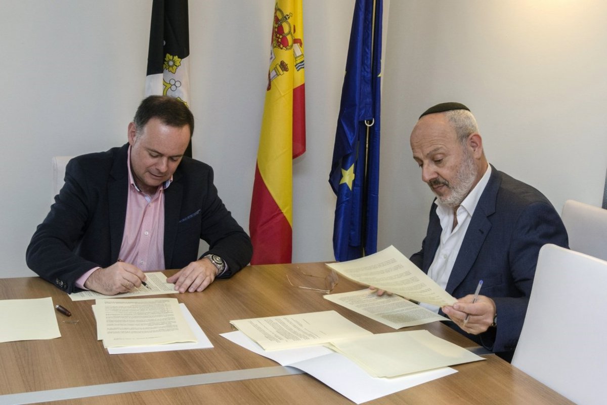 Javier Celaya Brey (izquierda), en su etapa como consejero de Educación del Ejecutivo local firmando un convenio con la Comunidad Israelita local. - GOBIERNO DE CEUTA