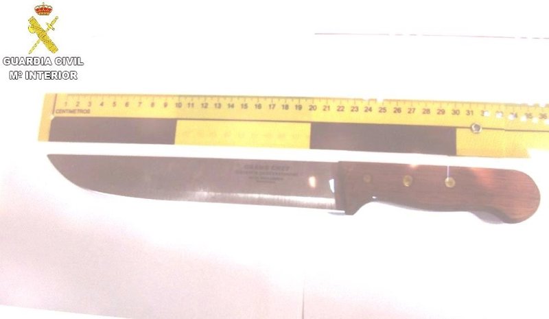 La Delegación del Gobierno en Melilla ha destacado que la Guardia Civil ha requisado a uno de los inmigrantes que lograron aproximarse a la valla en la avalancha registrada este martes un cuchillo de 35 centímetros de largo, dotado con una hoja de 22 centímetros.