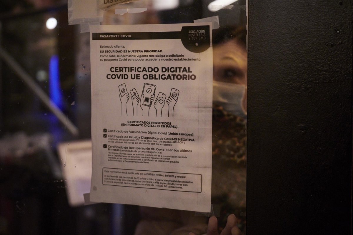 Archivo - Un establecimiento hostelero a 27 de noviembre de 2021, en Pamplona, Navarra (España). El pasaporte Covid se convierte en requisito para entrar a determinados y eventos en Navarra desde este sábado. La medida estará vigente hasta el 7 de enero - Eduardo Sanz - Europa Press - Archivo