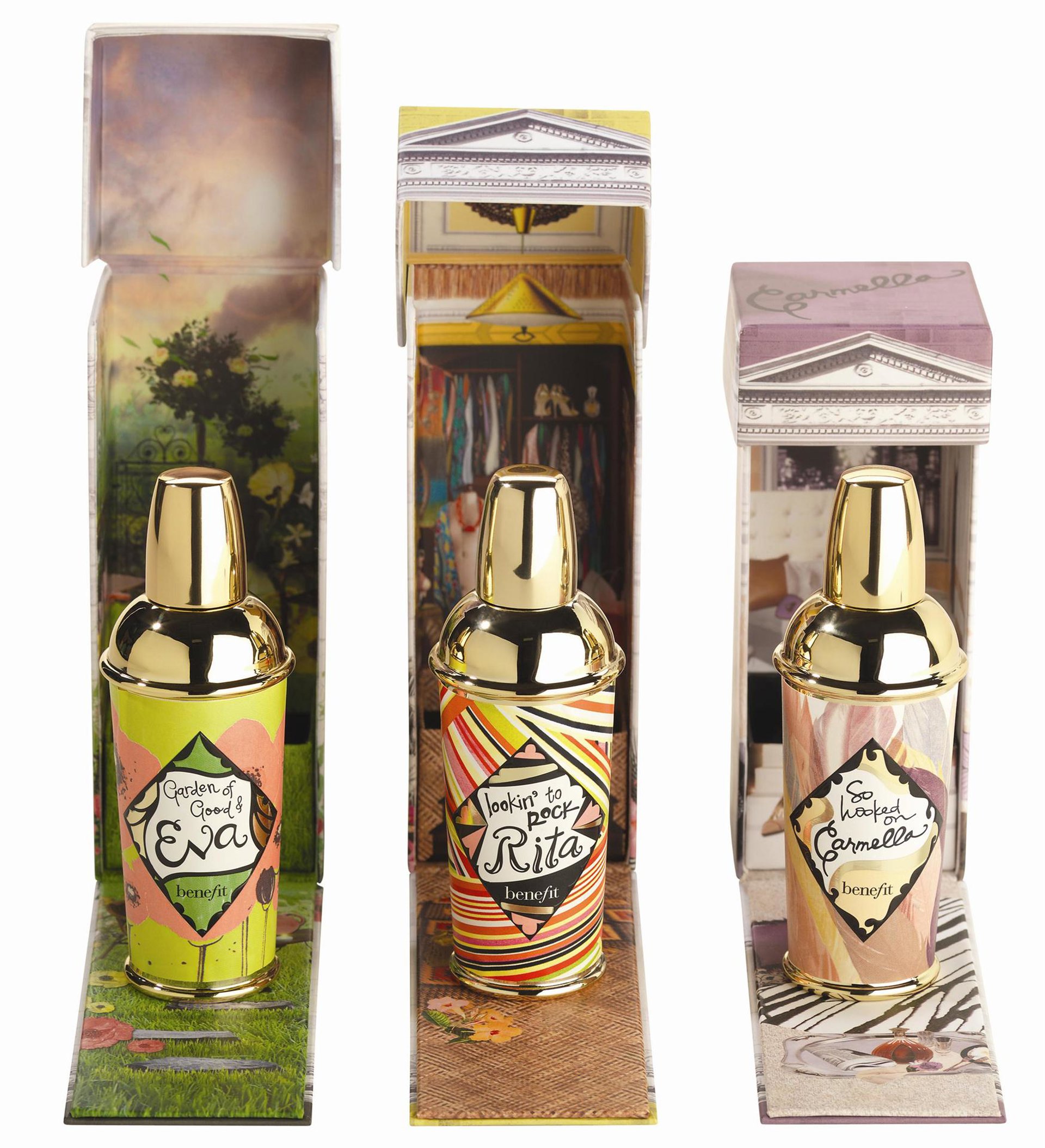 La colección Crescent Row de Benefit cuenta con tres nuevas chicas en su stand: Eva, Rita y Carmella son las tres nuevas fragancias que se incorporan a la marca
