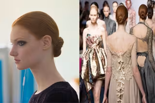 El moño de bailarina triunfa en el desfile de Yiqing Yin en el desfile de Alta Costura parisino. La peluquera Delphine Courteille, encargada de los peinados que deslumbraron en la pasarela nos muestra los pasos para hacer el moño.