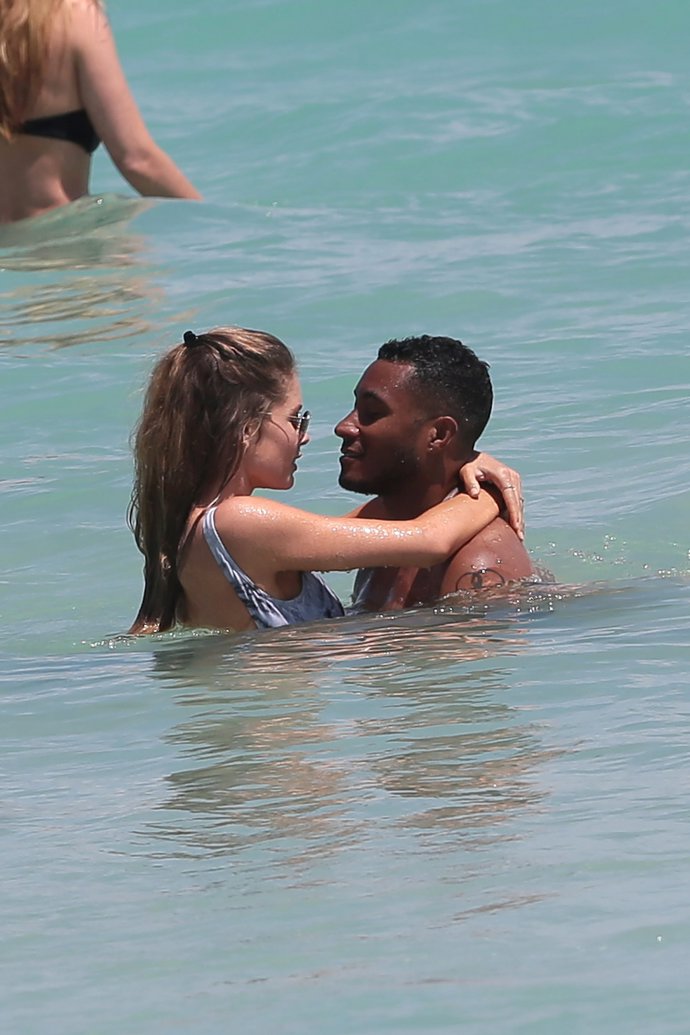 Tras jugar al típico juego playero, la modelo y su marido se dedicaron unos besos y caricias en el agua que demostraron la complicidad que mantienen después de contraer matrimonio hace años.