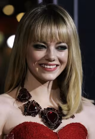 La noche del estreno en Los Ángeles Emma acudió con un precioso vestido color rojo carmesí, acompañado con un gran collar también rojo que le marcaba mucho la silueta. Para el pelo eligió un tono rubio con un corte sencillo por encima del hombro con flequillo recto. Pero sin duda lo que más llamó la antención fue su maquillaje.
