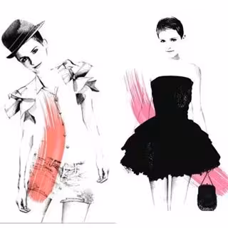 En los dibujos, con sutiles pinceladas de lo que serán los tonos de la colección, se puede ver a la joven luciendo dos imágenes antagónicos. Uno más informal y diurno versus otro más sofisticado y sensual.