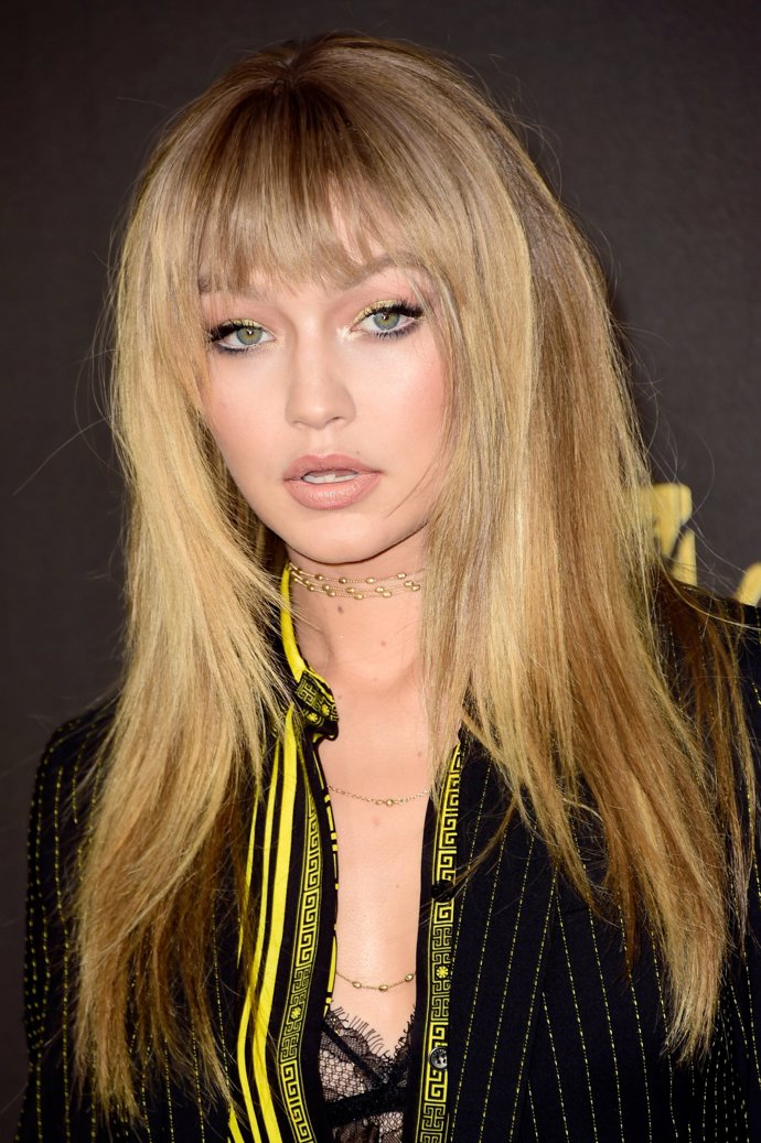 Si por el contrario se trata de una cara redonda como la de Selena Gomez, o Gigi Hadid, tu flequillo será uno que tenga movimiento con un desfilado con los extremos más largos.
