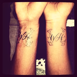 Una 'W' y una 'H' en sus muñecas derechas rodeadas de cuatro pequeñas golondrinas y sendas cruces a cada lado honran la memoria de la culpable del megaéxito 'I will always love you', tema principal de 'El guardaespaldas', película que consagró a Whitney Houston como cantante en la década de los noventa.