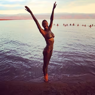 Stacy Keibler ha disfrutado de una relajante sesión de belleza en el mar Muerto, lugar en el que ha aprovechado para embadurnar su cuerpo de lodo, una práctica muy popular en los últimos tiempos.