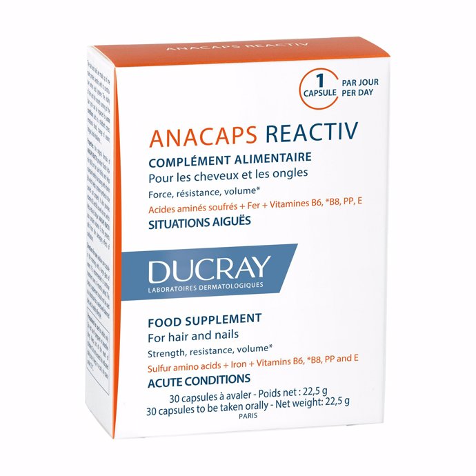 En última instancia, nuestro cabello es reflejo de nuestra salud, y para ello es también súper fundamental seguir una dieta lo más equilibrada y variada posible. Si además aportamos una gran cantidad de vitaminas y de minerales, importantes para la fisiología de nuestro cabello, nos aseguramos una menor frecuencia de la caída. La toma de suplementos en estos casos suele ser idónea, y aquí las Ducray Anacaps Reactiv (23,90 euros las 30 cápsulas) que aportan los nutrientes esenciales al bulbo piloso incluyendo el 100% del valor nutricional de referencia en Hierro y Biotina, para ofrecernos un crecimiento de calidad de nuestro cabello.