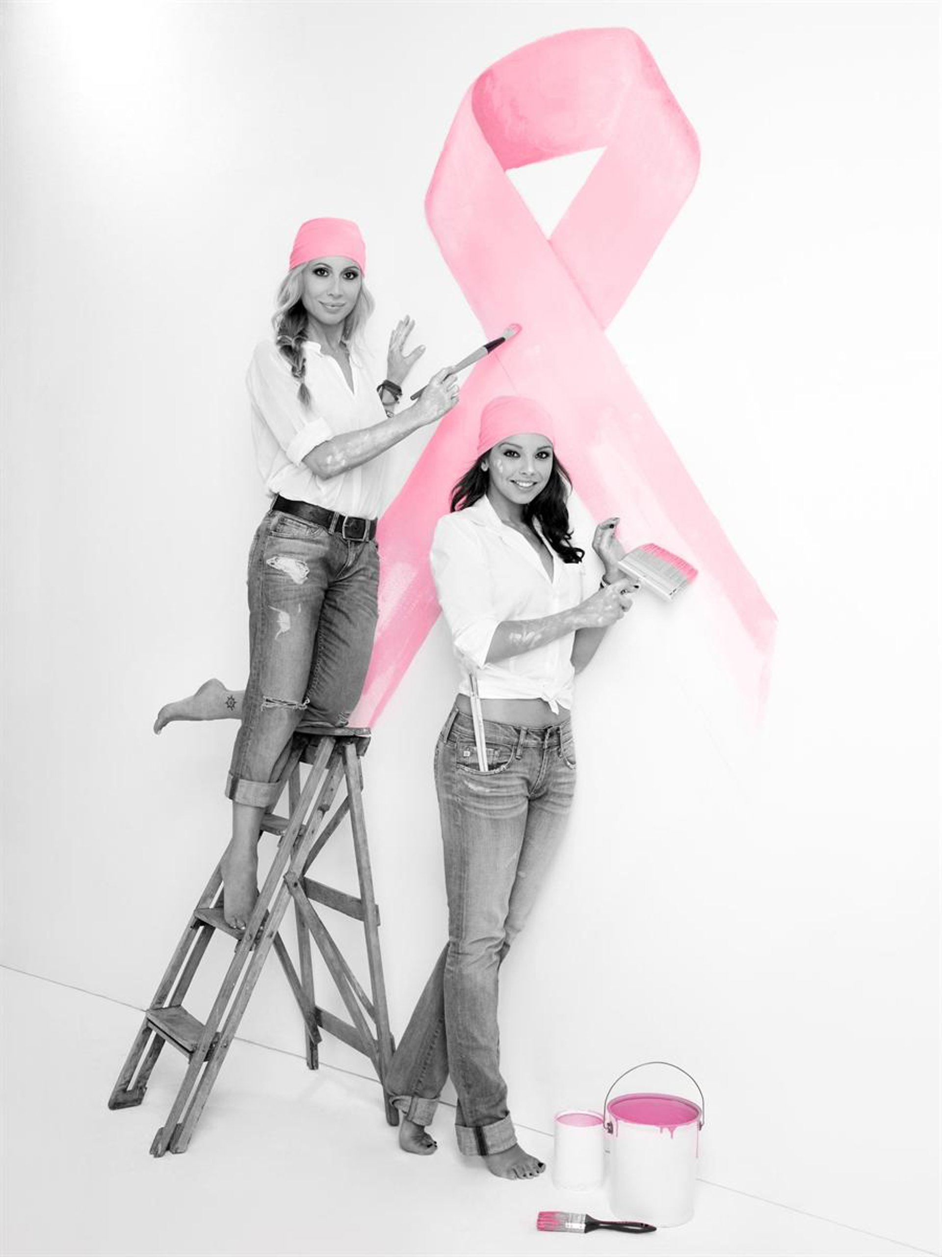 Marta Sánchez y Chenoa han apoyado esta causa posando con el pañuelo rosa de Ausonia en la cabeza y pintando un gran lazo como muestra solidaria ante una enfermedad que padecerá 1 de cada 8 mujeres, según datos de la AECC.