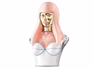 La botella dorada que encierra la esencia de la artista representa, como no podía ser de otra forma, el busto de Minaj con un corsé en color blanco y su melena en color rosa.