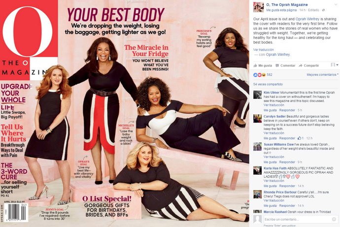 La popular presentadora de televisión Oprah Winfrey presume de figura en el número de abril de la revista O Magazine, su propia publicación. La productora televisiva, todo un referente en el mundo de la comunicación en Estados Unidos, se ha tomado esta pérdida de peso como algo más que un acto estético, como un cambio hacia un estilo de vida más saludable. "Sé de lo que hablo: con la edad viene la comprensión y apreciación de tu activo más importante, tu salud", comenta en las páginas interiores.