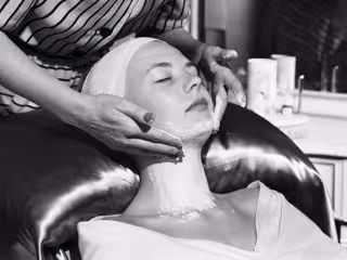 A Beauty Specialist Applies A Cosmetic Face Pack To A Woman's Neck. - CHALONER WOODS