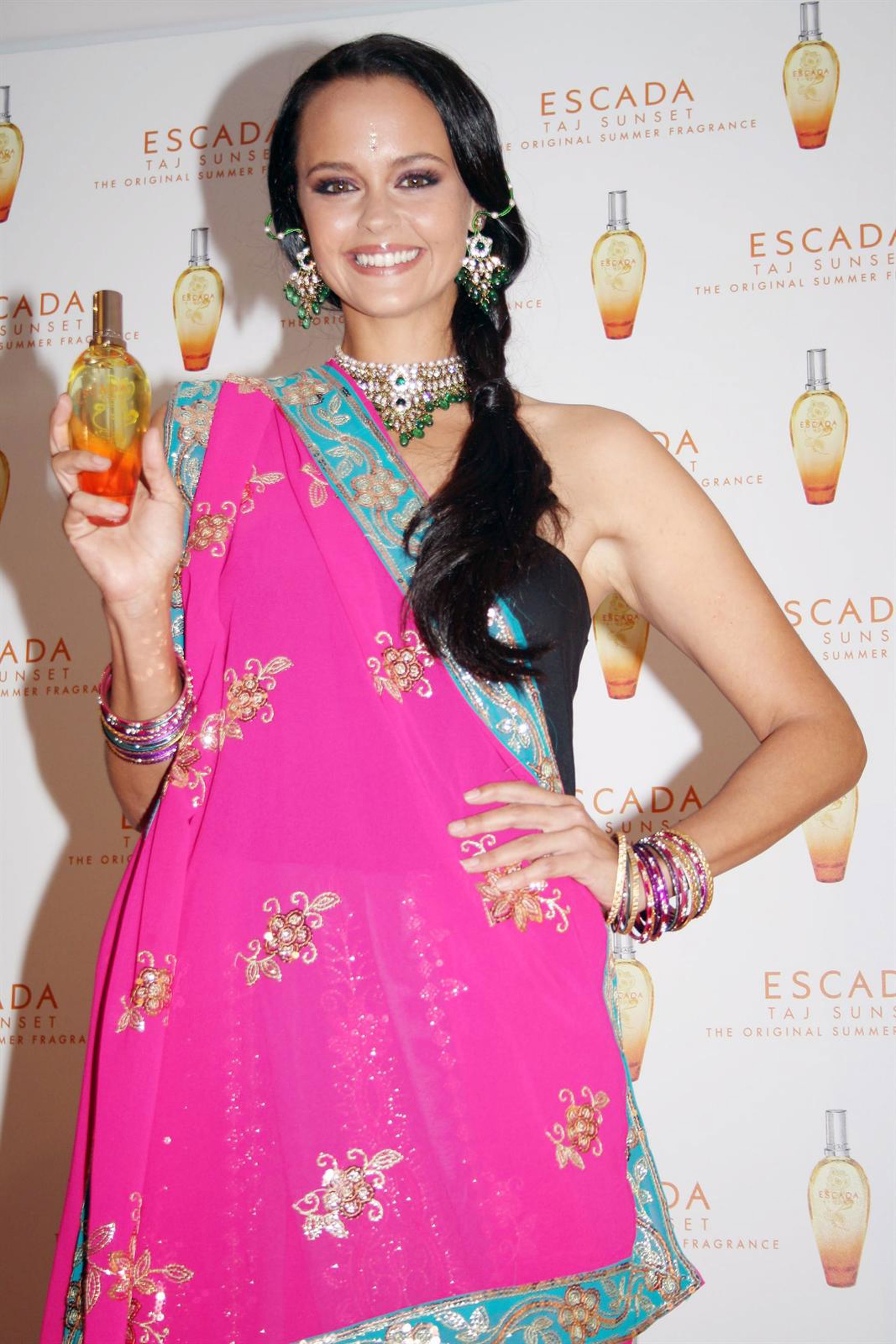 Shaila Dúrcal ha hecho una parada en la grabación de su quinto y sexto disco para asistir a la boda de su hermana Carmen Morales y convertirse en imagen de la nueva fragancia veraniega de Escada Taj Sunset