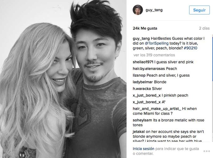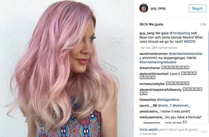 Renovar o morir, esa es la máxima que ha aplicado Tori Spelling que, por primera vez en 20 años, deja el rubio para dar paso a un color más atrevido y muy de moda: el rosa. El estilista Guy Tang, uno de los peluqueros de West Hollywood que ha revolucionado los tintes con apuestas atrevidas como los colores azules, púrpuras y plateados, es el autor de este cambio drástico en la protagonista de Sensación de vivir, a la que le sienta fenomenal esta apuesta por el color.