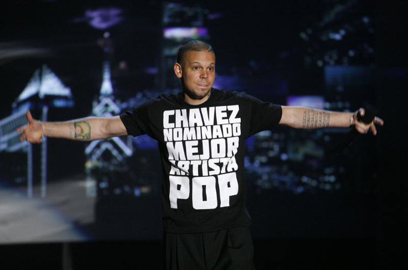 Durante la conducción de la gala, el cantante de Calle 13 arremetió contra varios dirigentes latinoamericanos, como Felipe Calderón, presidente de México. Así, le pidió a la presidenta de Argentina, Cristina Fernández Kirchner, que deje "el bótox" o nominó -también con una camiseta- al presidente de Venezuela, Hugo Chávez, como "mejor artista Pop".