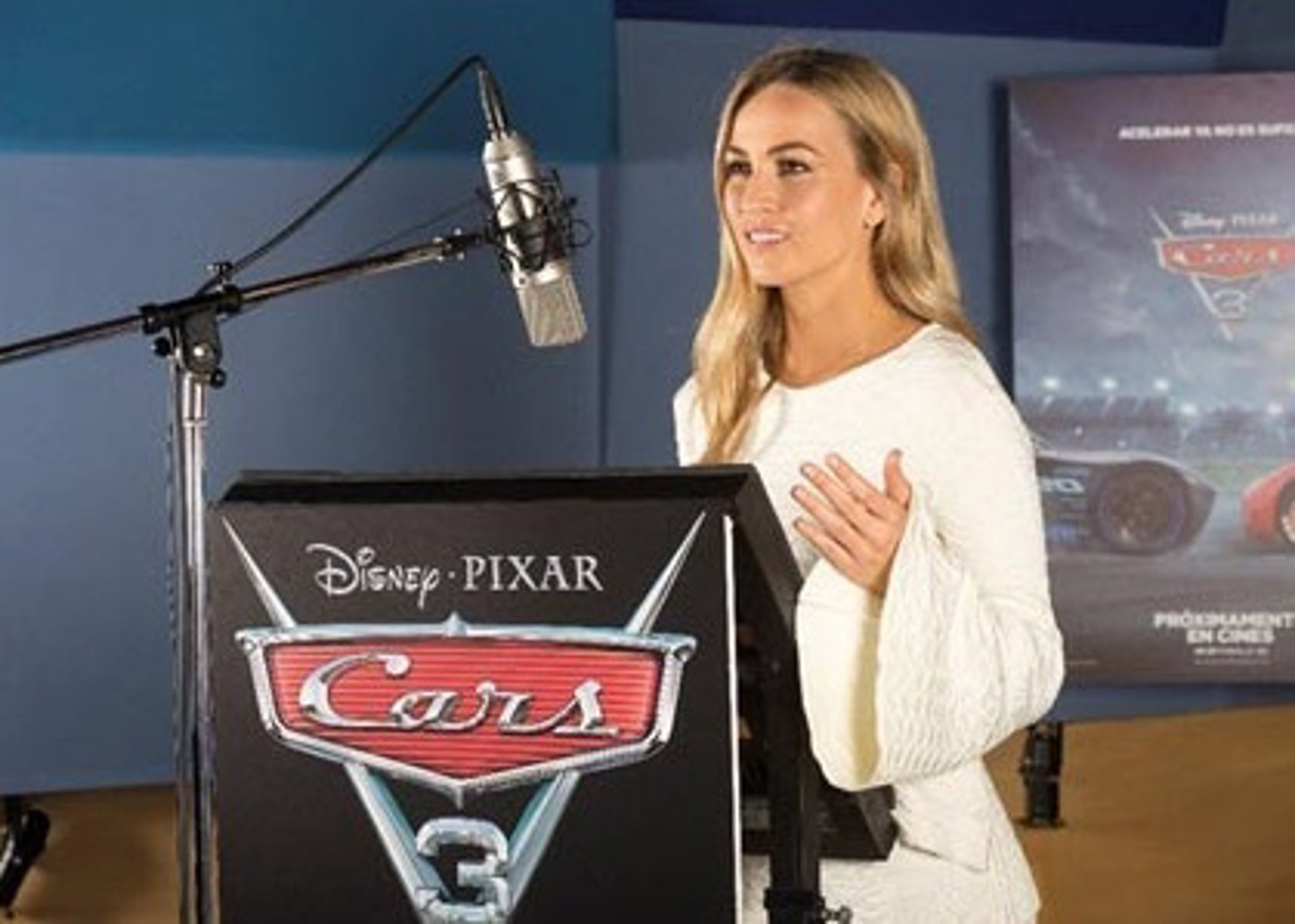 La piloto Carmen Jordá se estrena con los coches esta vez en la gran pantalla. La joven llega a Disney-Pixar para hacer un cameo en la nueva película de Cars, poniéndole voz a APB, uno de los coches que participa en la carrera Thunder Hollow.