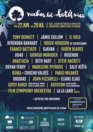 Tony Bennett, Jamie Cullum, Roger Hodgson, Rubén Blades, Il Volo, Franco Battiato y Pablo Milanés son algunos de los nombres que encabezan el cartel de la segunda edición de Noches del Botánico entre otros.