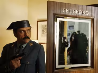 Caracterizado como el teniente coronel, Tous bromea poniendo cara de malo al empezar la charla con los periodistas que asistieron este viernes al rodaje del filme dirigido por Chema de la Peña (iniciado el pasado 16 de agosto) en el Centro Superior de Estudios de la Defensa Nacional (CESEDEN). Y se asusta cuando Juan Diego (General Alfonso Armada en la ficción) le grita a su espalda: "¡Teniente!". Es que está muy metido en el personaje.