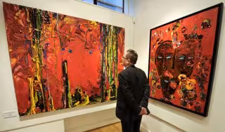 Poole también destaco que Hopkins usa una paleta en lugar del pincel tradicional en sus creaciones, que son generosas en textura y color. "Fuertes, intensas y muy abstractas, especialmente en sus máscaras. Es muy difícil señalar sólo un título, pero pueden ver que los ojos, él está muy interesado en los ojos. En sus palabras: ves el mundo desde tu ojos, en tus ojos", declaró.
