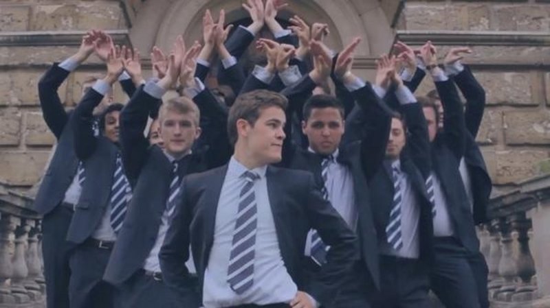 El movimiento de caderas, la coreografía y tono son muy similares a los de la cantante colombiana y todo ello vestidos con traje y corbata. Este grupo musical de estudiantes de Oxford ha dado la vuelta al mundo y ya tienen más de un millón de visitas.