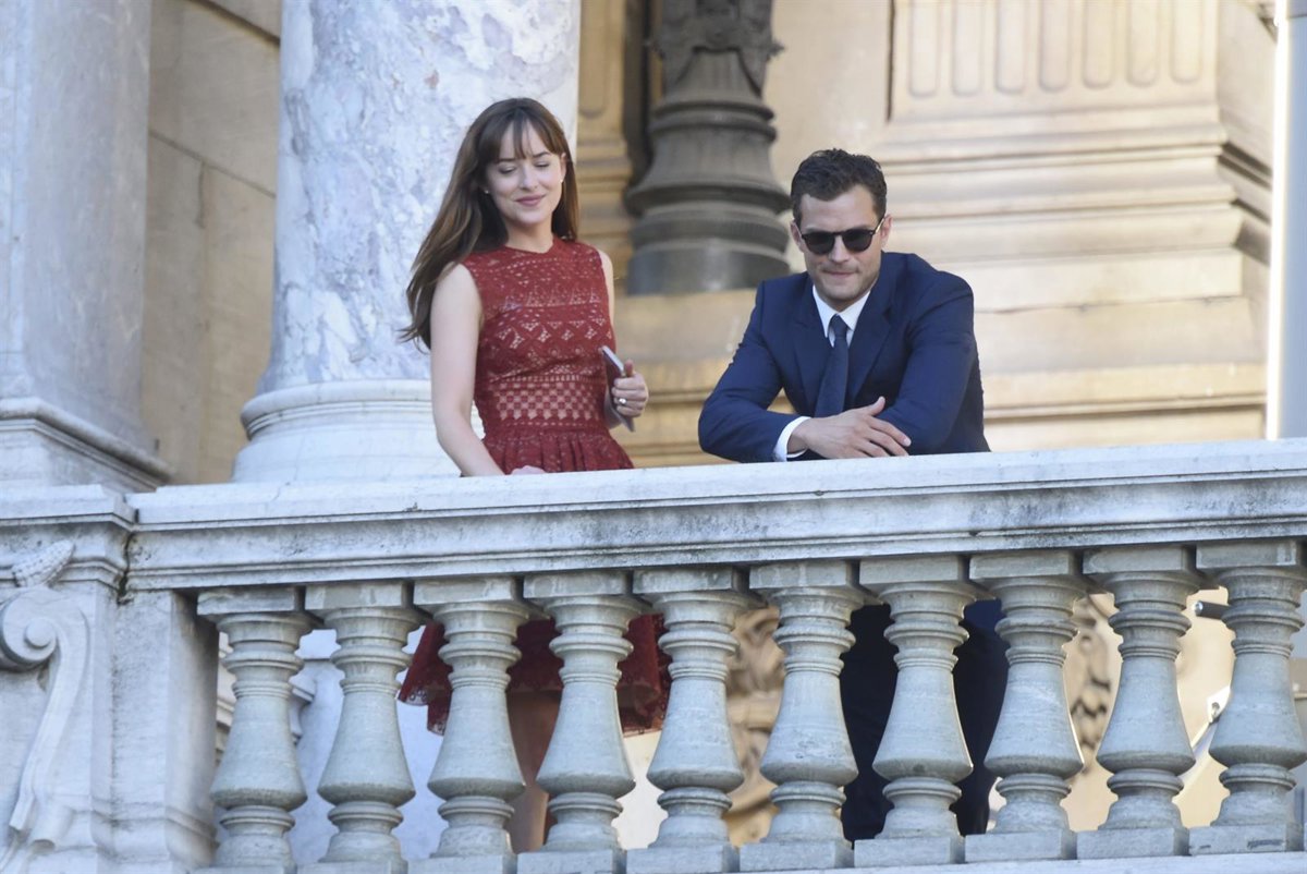 Dakota Johnson y Jamie Dornan siguen en Francia donde se encuentran rodando la segunda parte de 50 sombras de Grey. El equipo al completo trasladó el set de rodaje de Niza a la capital francesa, donde hemos podido verles en la Ópera Nacional de París.