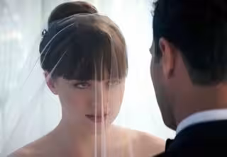 En el teaser de la tercera parte de la saga aparece Anastasia Steele, interpretada por Dakota Johnson, vestida de novia. Pero lo más sorprendente de la imagen no es verla con un traje nupcial sino su cara, que lo dice todo sin palabras. Un rostro que denota tristeza y algo de miedo.