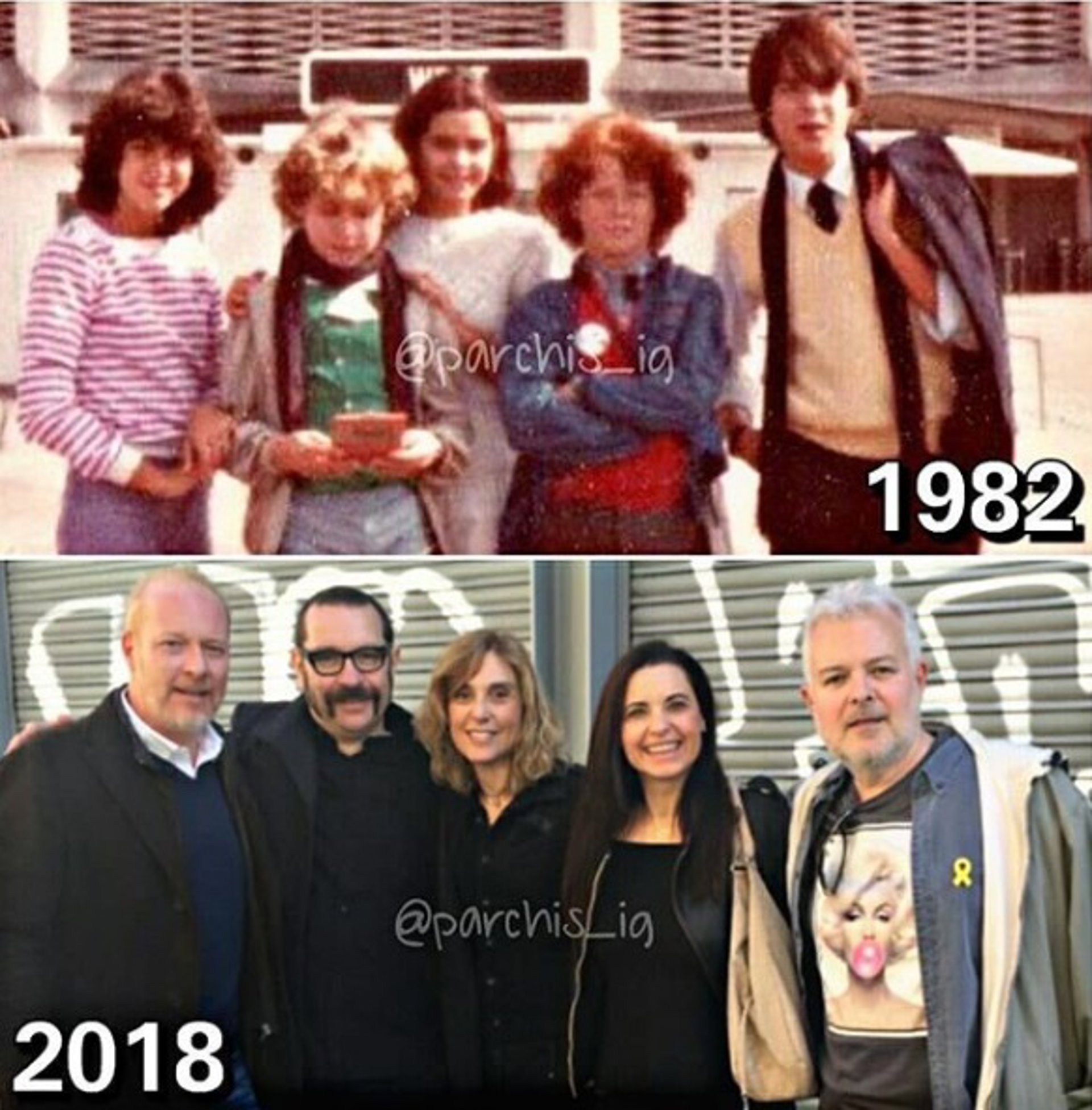1982, Parchís era el grupo más exitoso para el público infantil y preadolescentes, un verdadero fenómeno de masas sin conocer las redes sociales. Gema, Yolanda, Tino, Frank y David formaban el quinteto que todos recordaremos por su trajes tipo monos y looks cada uno vestido de un color como las fichas del juego familiar. Rojo, verde, amarillo, azul y como no el blanco como el dado...