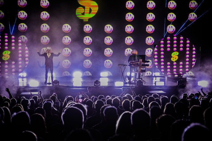 Con una puntualidad británica y en un espectacular escenario con dos pantallas circulares rotativas que emitían imágenes geométricas, salieron Chris Lowe y Neil Tennant, que directamente metieron primera y arrancaron el concierto con Inner sanctum, de su último álbum, Super.