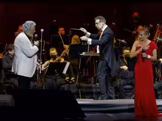 Una cita musical que estaba programada para recibir a Plácido Domingo junto a la soprano Ainhoa Arteta, que no pudo acudir por sus recientes problemas de salud, ya que todavía está recuperándose del cólico nefrítico que sufrió a principios del mes de agosto. Pero, ante la ausencia de la vasca, el barítono contó con la inesperada presencia de Marta Sánchez que, elegantísima con un vestido asimétrico en color rojo, interpretó de manera impecable varios temas que concluían con una emocionante inerpretación a dúo del Himno de España escrito por la artista.