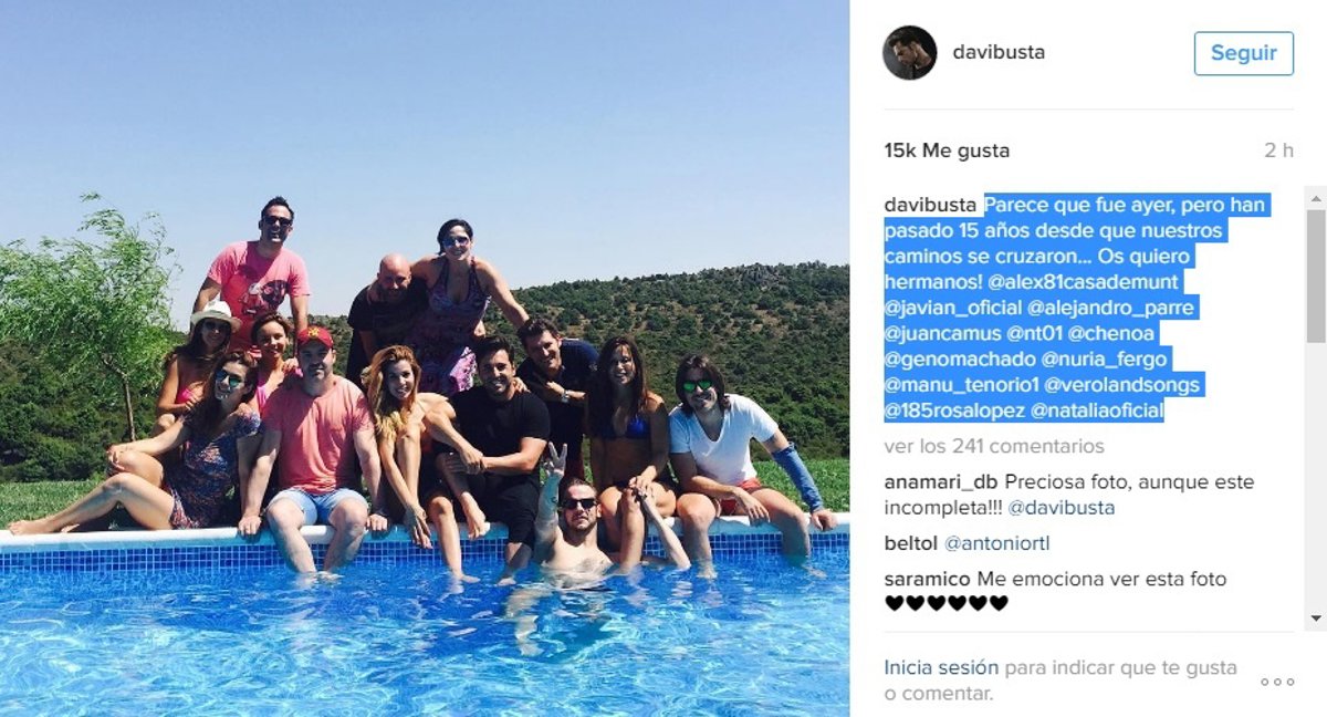 MADRID, 3 Jul. (CHANCE) - Después de la polémica surgida con el grupo de Whatsapp de los concursantes de la primera edición de 'Operación Triunfo', los ex participantes han encontrado un hueco en sus apretadas agendas y han disfrutado de un día de piscina en buena compañía. No podían haber elegido una fecha mejor para este veraniego plan. Tal y como han compartido en sus redes sociales, los artistas se han reunido para celebrar los 15 años que han pasado ya desde que comenzaran su aventura en TVE. Un día en el que tienen mucho que celebrar. Este encuentro se celebra después de que Televisión Española anunciase el esperado concierto que reunirá a todos los participantes de la primera edición de 'Operación Triunfo'. Unas imágenes que hacen gala del buen rollo que existe entre los compañeros, aunque son notables las ausencias. David Bisbal, Gisela y Mireia no se han unido al domingo piscinero del resto de cantantes. ¿Confirmará esta no asistencia la mala relación que mantienen con el grupo? Mientras tanto, los ex triunfitos lo han pasado así de bien...