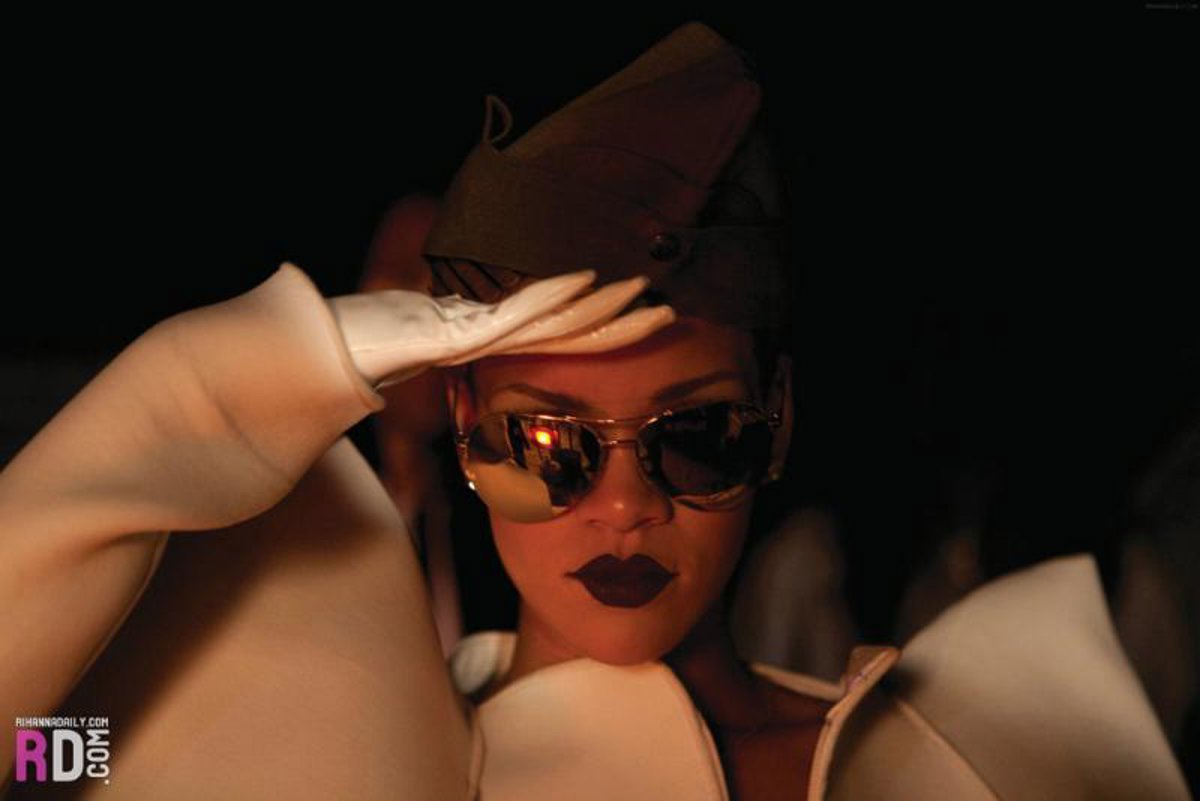 A pesar del gran despliegue de soldados, artillería, tanques y explosiones, lo que más impacta del vídeo es ver a una sexy Rihanna pasando revista a las tropas. En una de las escenas, la cantante de 'Umbrella' se exhibe vestida con un casco, sin pantalones y con dos minúsculas tiras negras para tapar sus pechos.
