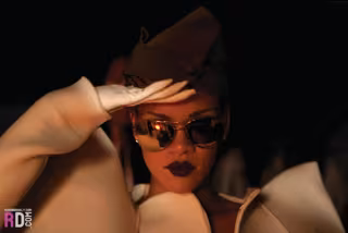 En otros momentos del videoclip, Rihanna aparece en el desierto con un uniforme militar de alta costura, portando un gran arma, y montada en un tanque rosa con unas orejas de Mickey Mouse a modo de casco.