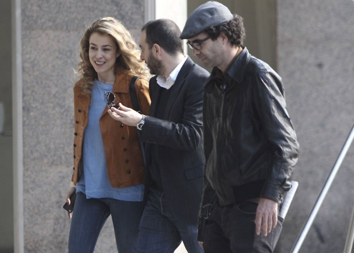 Más tarde y luciendo una indumentaria diferente con pitillos grises, botines negros y cazadora de motero marrón, se metía en la piel de su personaje para rodar una de las secuencias. La guapa intérprete aparecía caminando por una céntrica calle acompañada por un atractivo joven con perilla.