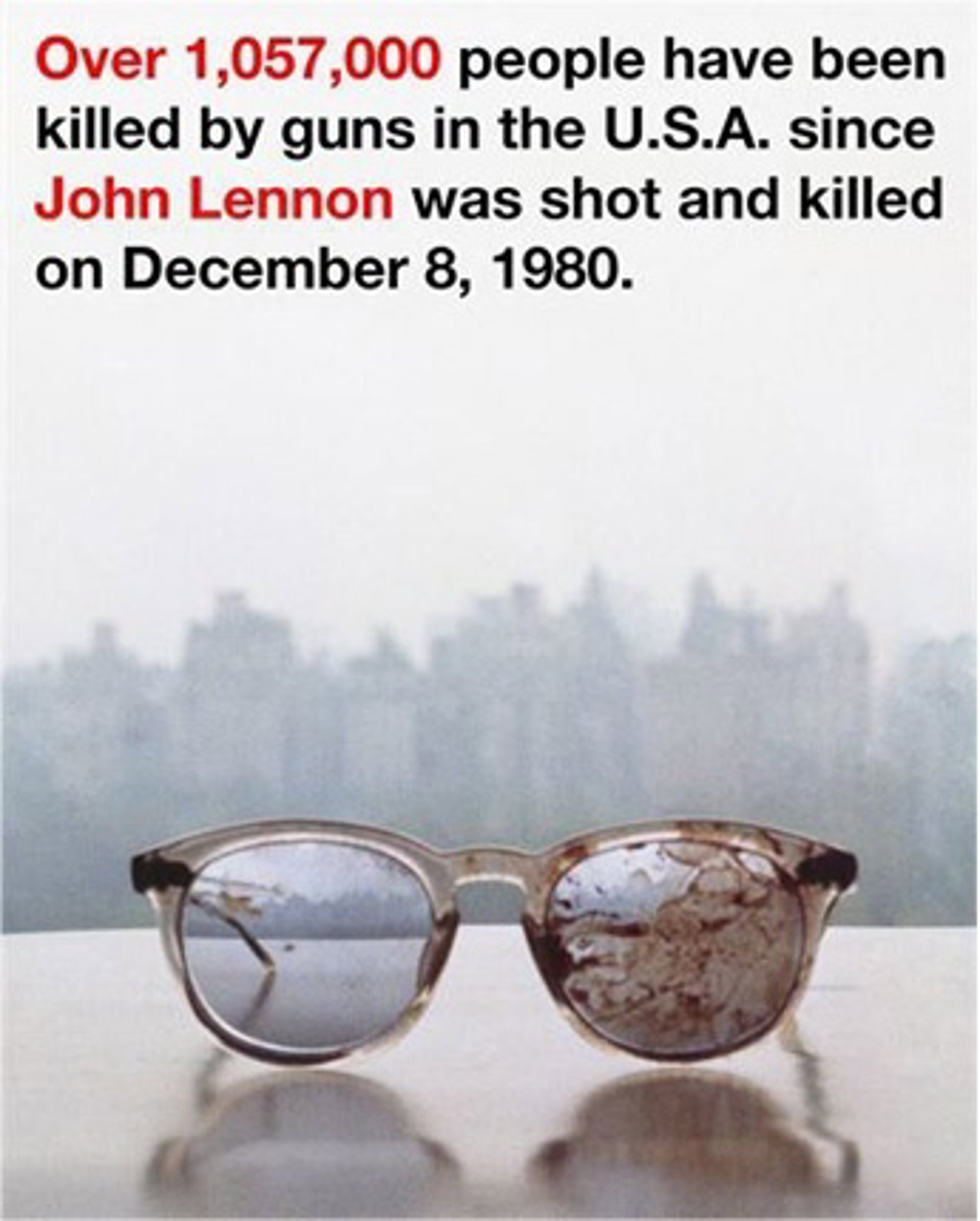 "Alrededor de 1.057.000 personas han sido asesinadas con armas de fuego en Estados Unidos desde que John Lennon fue disparado y asesinado el 8 de diciembre de 1980", ha manifestado la mujer del músico en la famosa red social.