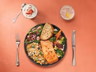 Siguiendo el modelo Harvard -50% vegetales, 25% hidratos de carbono y 25% proteínas-, el "Plato Perfecto" está compuesto por una base de proteína y tres guarniciones, combinando texturas, sabor y color, acompañadas de pan de masa madre, bebida y postre. Este nuevo menú ya está disponible a un competitivo precio, desde 15,95 euroS para la opción vegetariano y de pollo, y por +1,5euroS para la opción de salmón y roast beef.