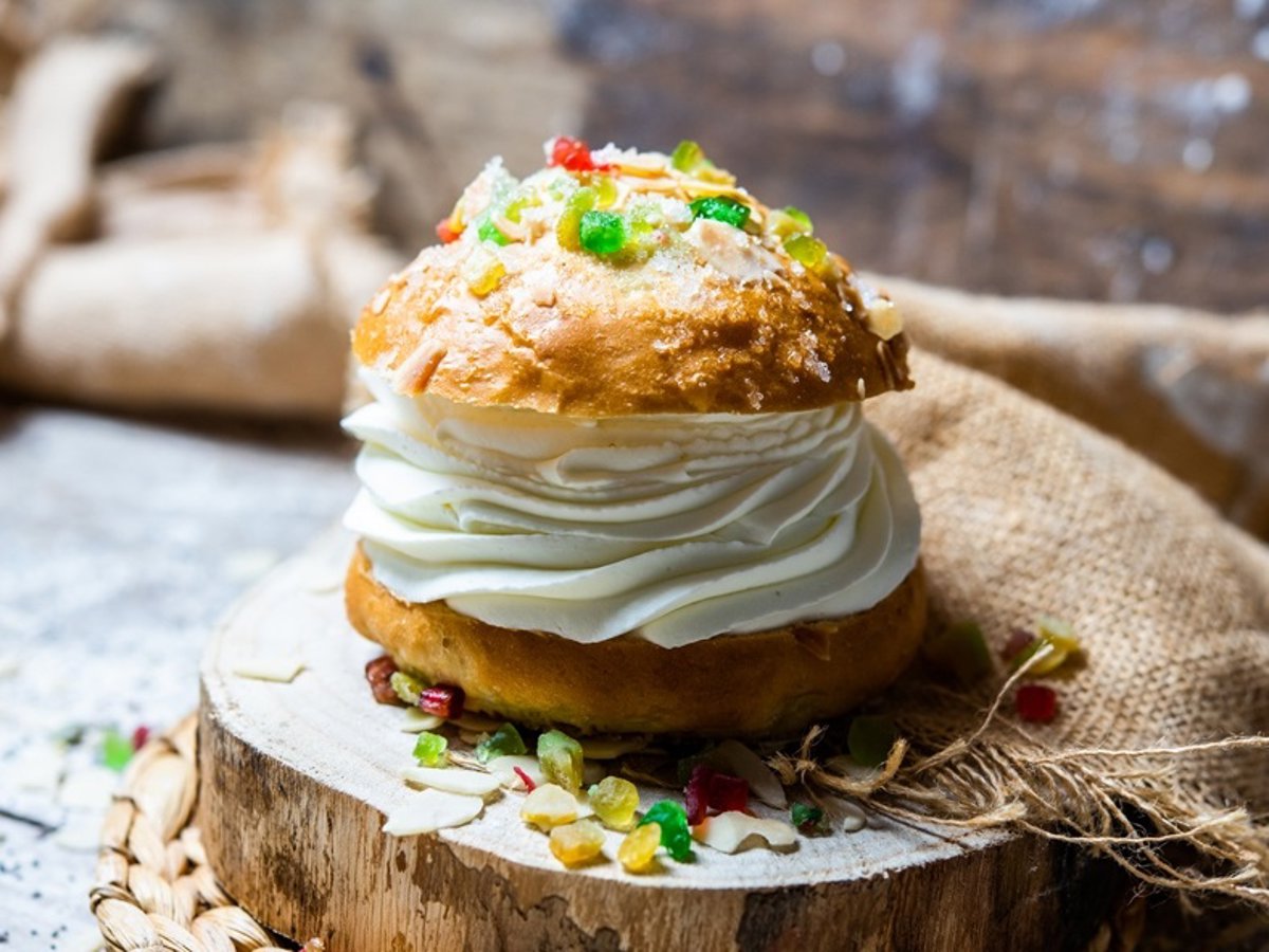 Preparados con los mismos ingredientes que un roscón de tamaño convencional, incluida la masa madre, la harina de almendra y la fruta escarchada, pero en este caso rellenos del mismo tipo de nata o de trufa.