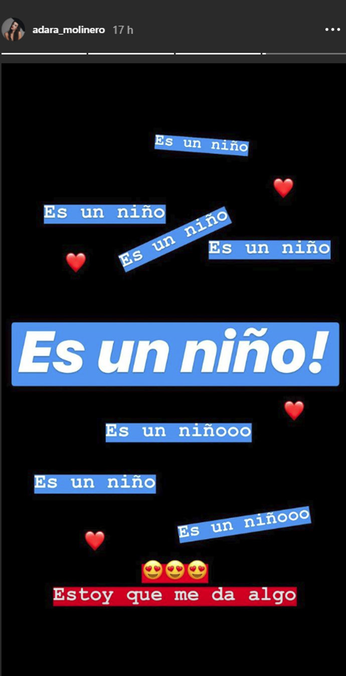 Adara no deja de mostrar en sus redes sociales lo pletórica que está ante esta noticia y presume de barriguita en sus publicaciones. Como madre primeriza, no podía esperar más a saber el sexo de su bebé. Por ello, la madrileña ha decidido acudir a una clínica privada para salir de dudas. Después de la resolución, la joven ha compartido con sus seguidores mediante stories la esperada noticia: "Es un niño", escribía en varias ocasiones junto con corazones rojos. La joven, además, añadía "Estoy que me da algo".