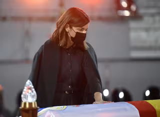 Arropada en todo momento por su hermana Beatriz Santana, vestida de luto y con unas grandes gafas de sol negras para ocultar su dolor, Alba llegaba a la capilla ardiente instalada en la Caja Mágica en torno a las 15.00 horas de este lunes y, completamente abatida, se acercaba al féretro con los restos mortales del tenista. Muy emocionada y asombrada por las decenas de coronas de flores que ha recibido su progenitor, veíamos a la joven despidiéndose, entre murmullos y con unas palabras que siempre se quedaran para ella, de su padre.